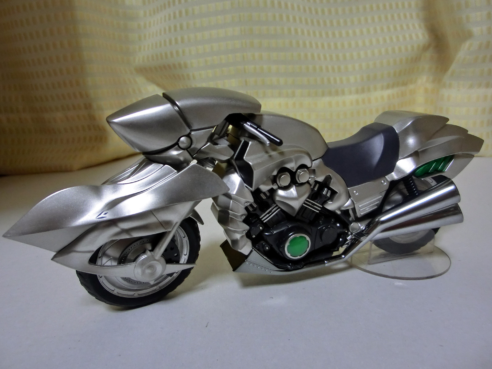 超カッコイ!! この銀の輝きが素晴らしい! ハンドルもタイヤもちゃんと動くしこのサイズで頑張ってますね。 |
