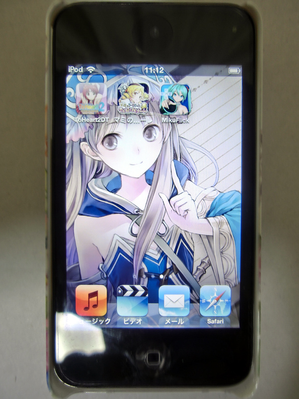表のスキンシールも内側カメラ位置が違ったり、ipodにはない通話関係とかの穴があったりでダメだった。 やはり画面サイズ以外は別物のようだ。 しょうがないのでトトリ壁紙で我慢した・・ |