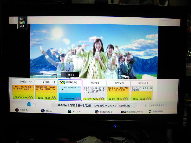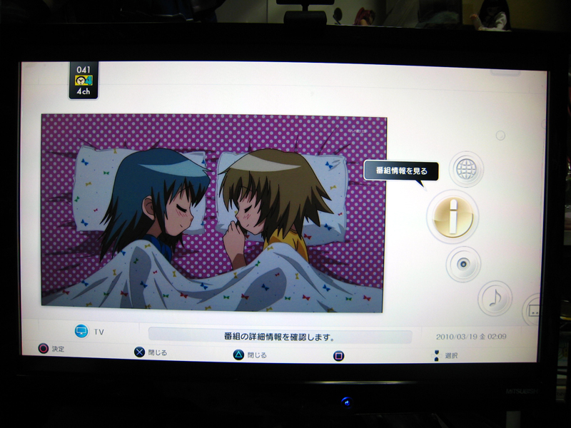 チャンネル確認。PS3用BDリモコンがあればチャンネル切替も楽みたいですがパッドなので仕方ない・・