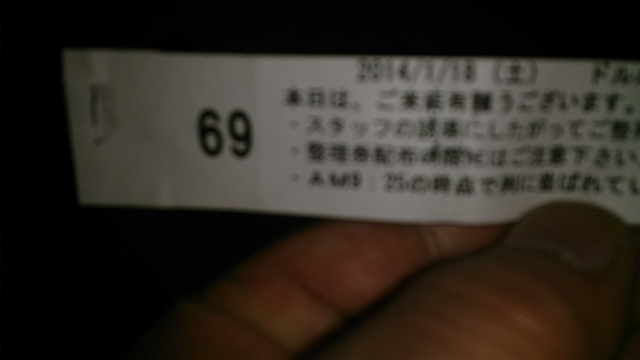 かなりギリギリに着いたのでほぼ最後尾だったがこの番号順に並びなおすと真ん中辺になった。