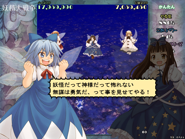 ・三月精の3人がステージボスなので一周3ステージで終わりなお手軽感覚ゲー。
