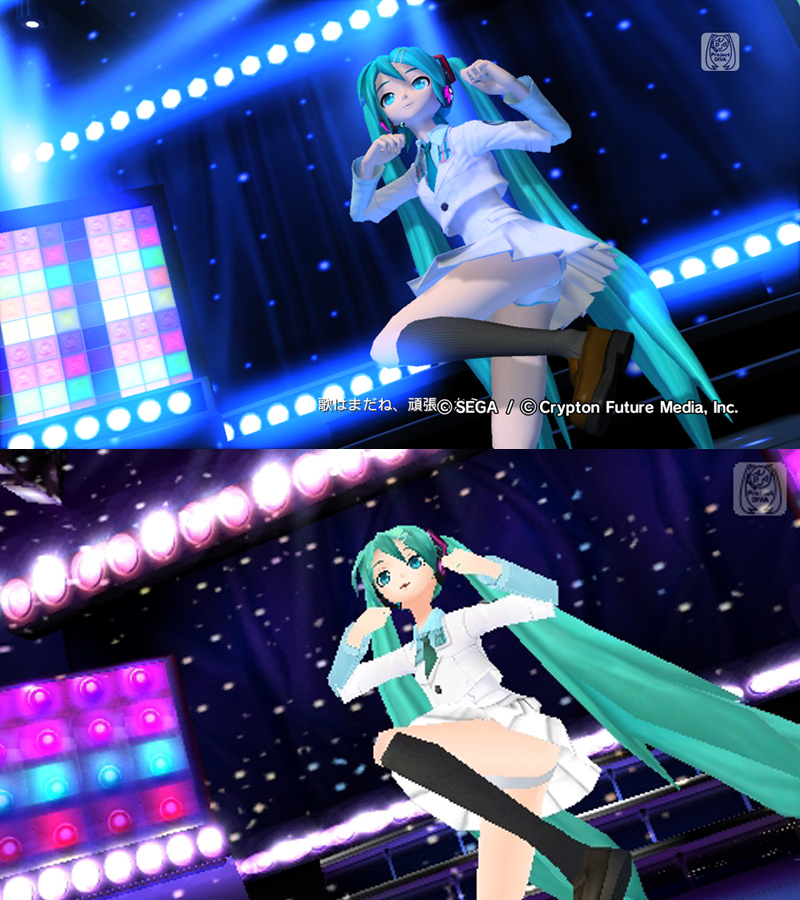 更にPSP版ミクでは全ての楽曲に3Dダンスが付いてるのではなく一部2Dイラストのスライドショーのみな楽曲があったのですがこれにも専用3D振り付けデータが入って踊りまくるらしいです。
