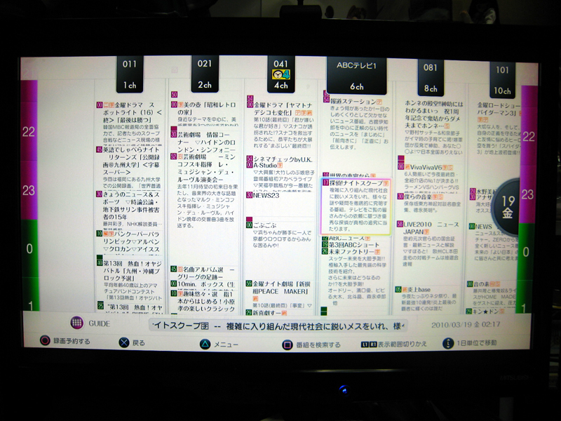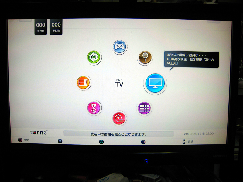 チャンネル確認。PS3用BDリモコンがあればチャンネル切替も楽みたいですがパッドなので仕方ない・・